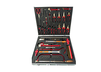 36件套無磁工具組采用無磁材料銅鈹合金制造,反復使用不生磁。為有效地防止工具與工作物表面相互摩擦、撞擊時產生的可燃物爆炸,該產品經過測試,沖(撞)擊、摩擦、落錘實驗合格率100%,符合國家標準,外包裝采用高強度防水專用工具箱。